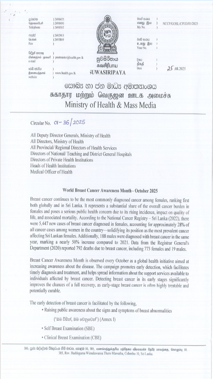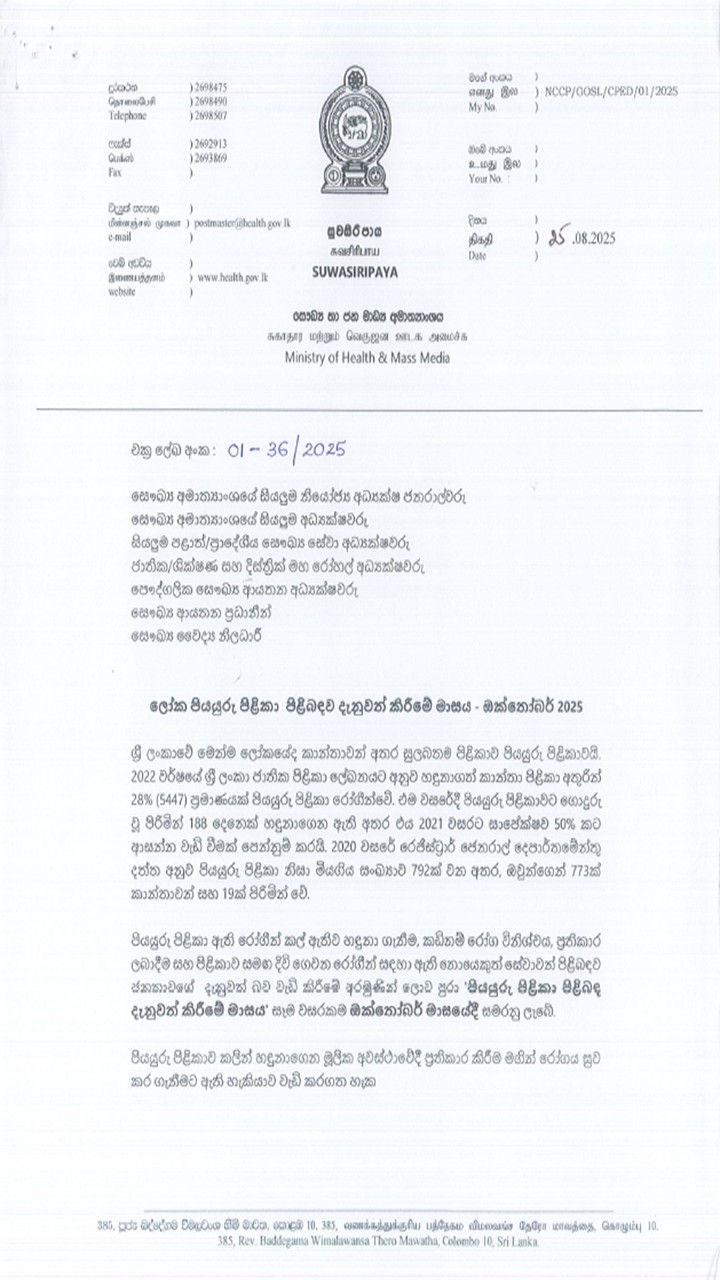 ලෝක පියයුරු පිළිකා පිළිබඳව දැනුවත් කිරීමේ මාසය - ඔක්තෝබර් 2025