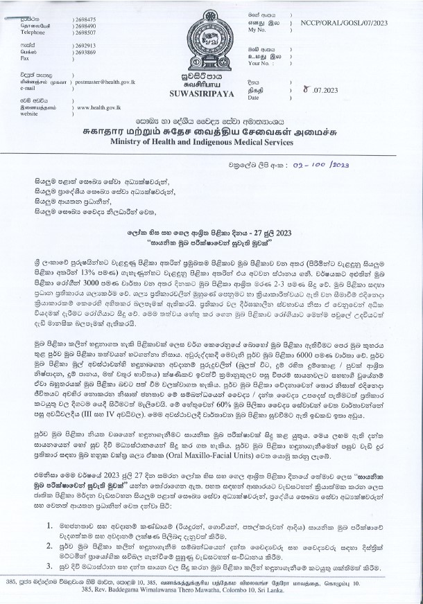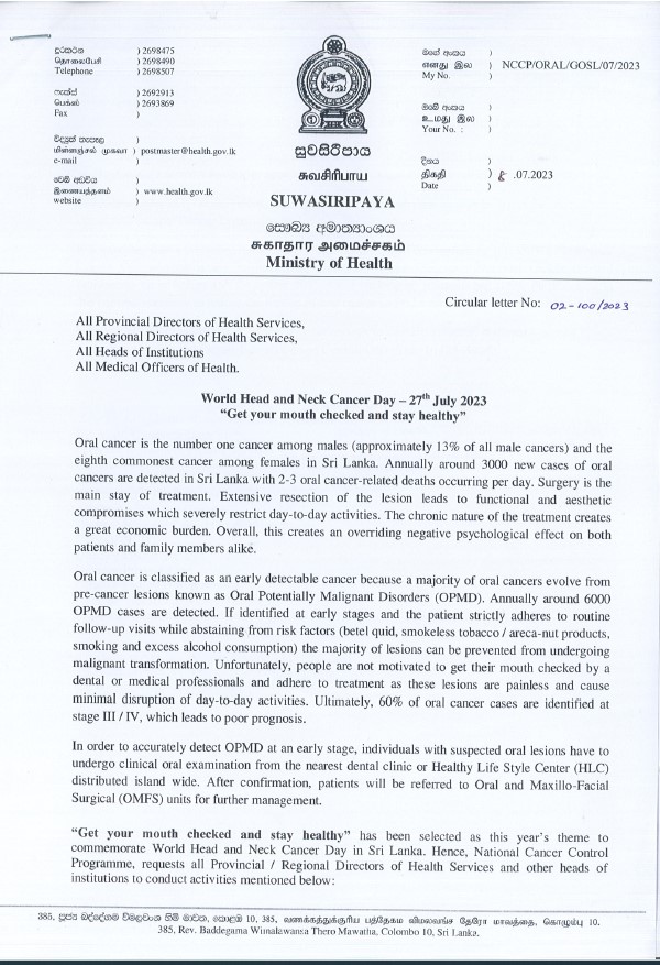 World Head and Neck cancer day -27th July 2023 Sinhala