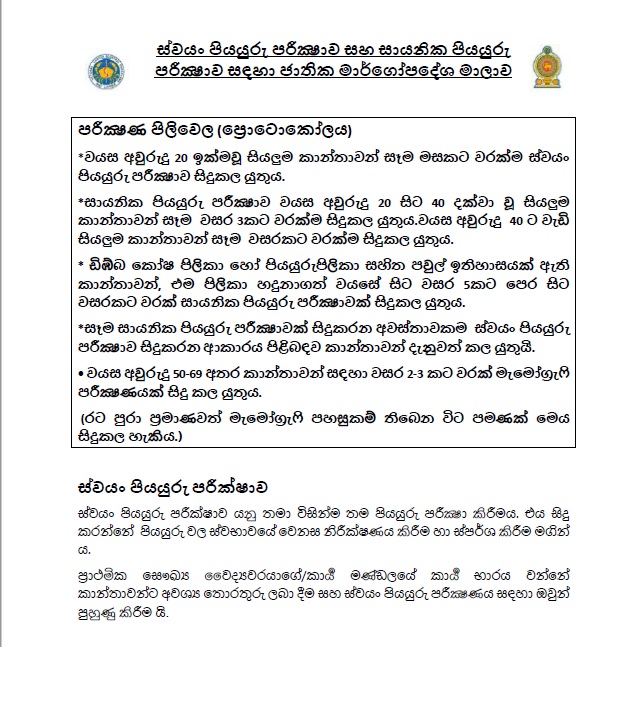ස්වයං පියයුරු පරීක්ෂාව සහ සායනික පියයුරු පරීක්ෂාව සඳහා ජාතික මාර්ගෝප්ේශ මාලාව