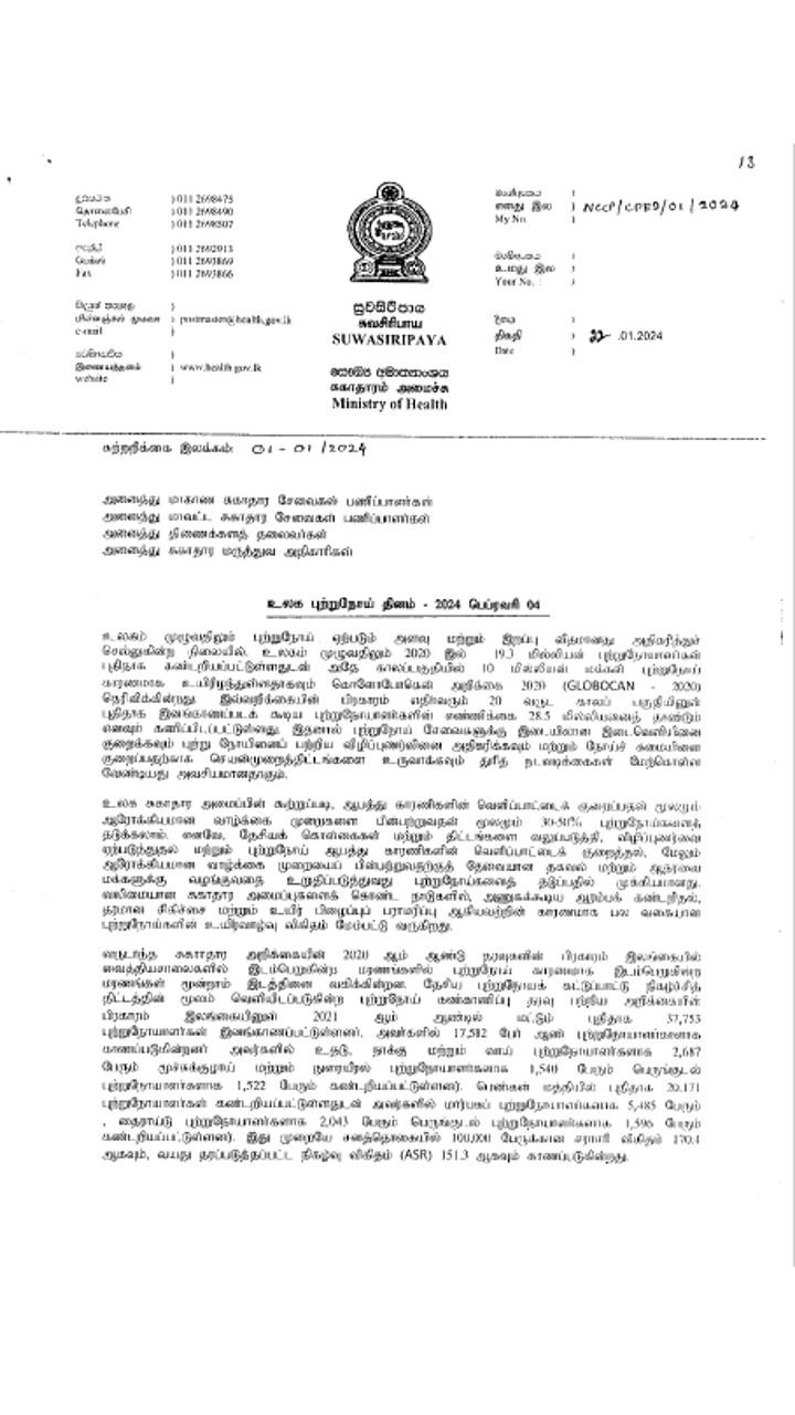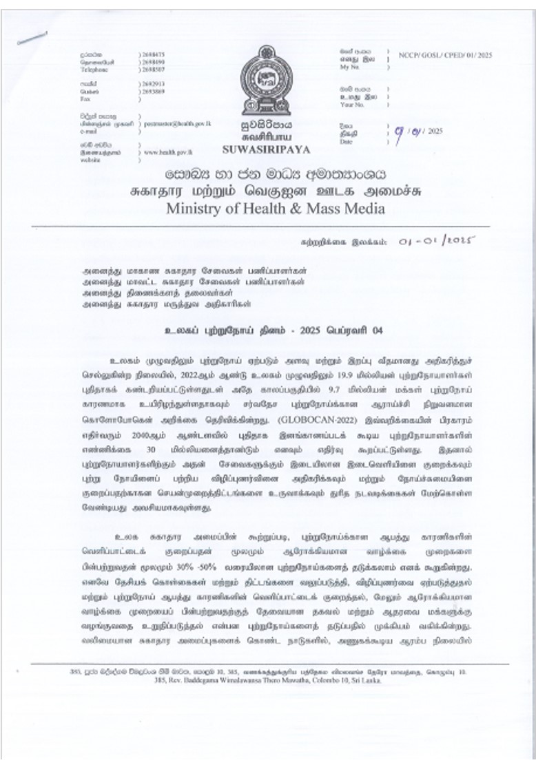 World Cancer Day - 4th February 2025 - Circular (Tamil)
