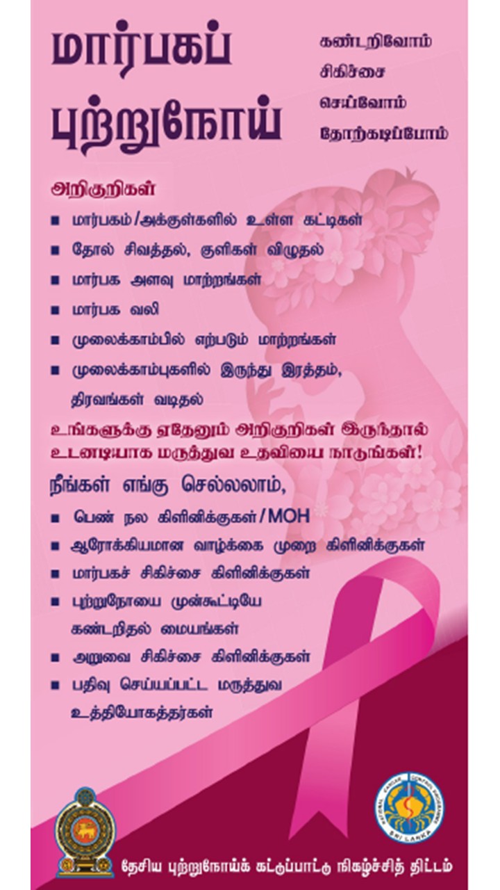 மார்பகப் புற்றுநோய் பதாதை -தமிழ் மார்பகப் புற்றுநோய் பற்றிய தகவல்களை அறிந்து கொள்ளுங்கள். 4 months ago|CPED Unit News Document-1